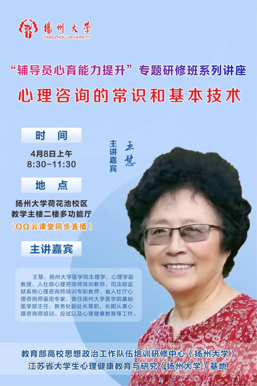 为进一步增强辅导员心理素养和危机应对能力,锤炼专业化的辅导员队伍,提升学校心理育人工作实效,教育部高校思想政治工作队伍培训研修中心(扬州大学)、江苏省大学生心理健康教育与研究(扬州大学)基地、扬州大学心理健康教育中心联合举办“辅导员心育能力提升”专题研修班。
