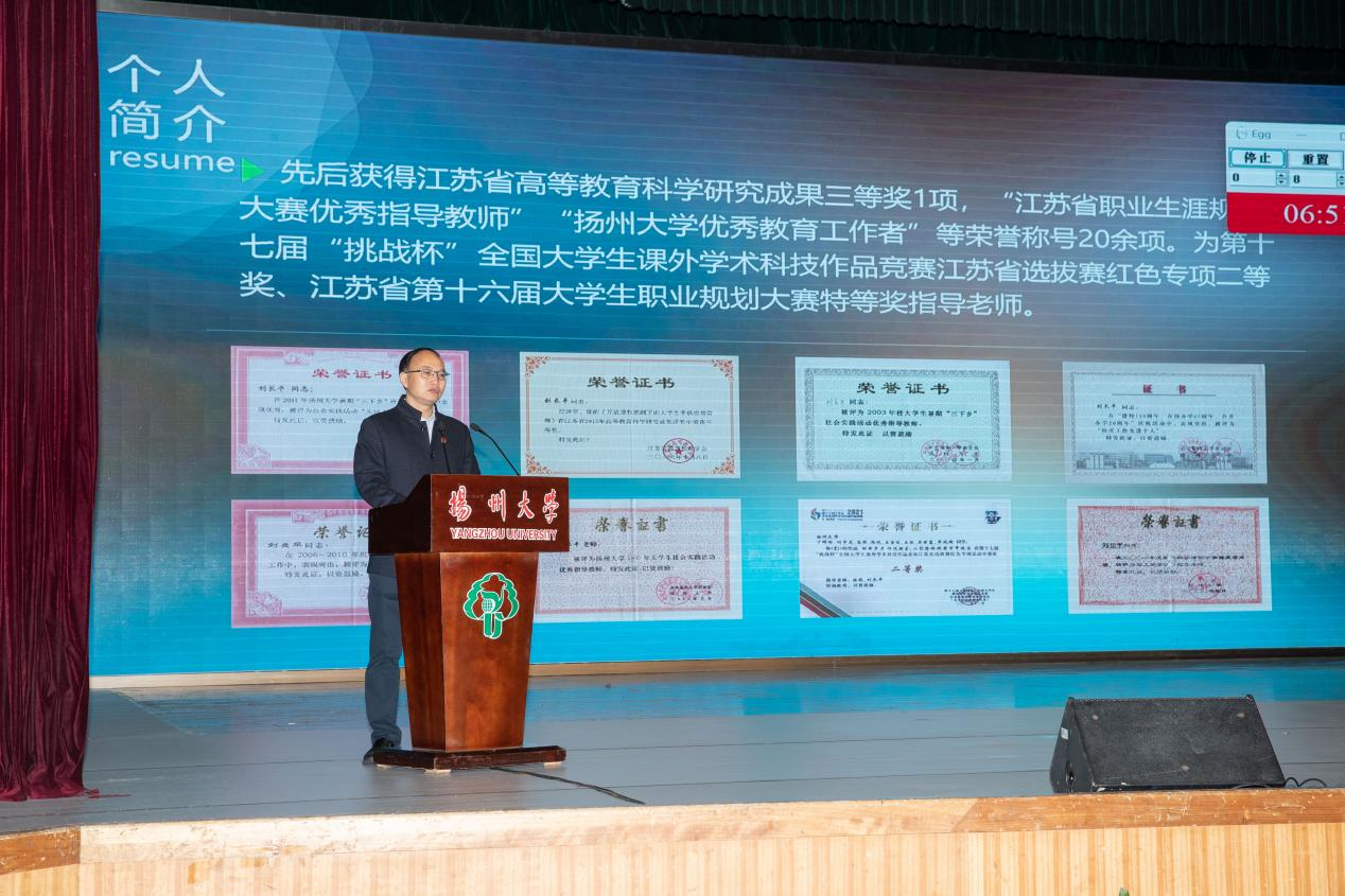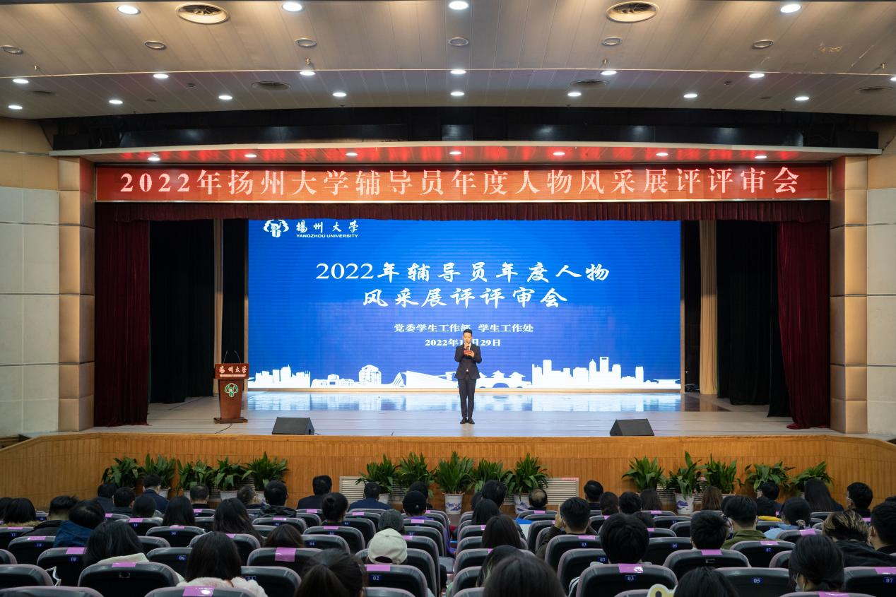 11月29日上午,中心在荷花池校区大学生活动中心三楼小剧场举行2022年扬州大学“辅导员年度人物”风采展评评审会,副校长蔡颖蔚,党委常委、宣传部部长张信华,党委常委、组织部部长孙鹏,党委常委、统战部部长、财务处处长华清君,党办主任王军,研工部部长吴刚,人资处处长徐蕾,保卫部(处)部(处)长姚永明,团委书记陈佩沛,就业指导中心主任陈轶群,离退休处处长、党工委书记生永明,学工部部(处)长施林峰,农学院党委副书记周立云出席并担任评审会评委。